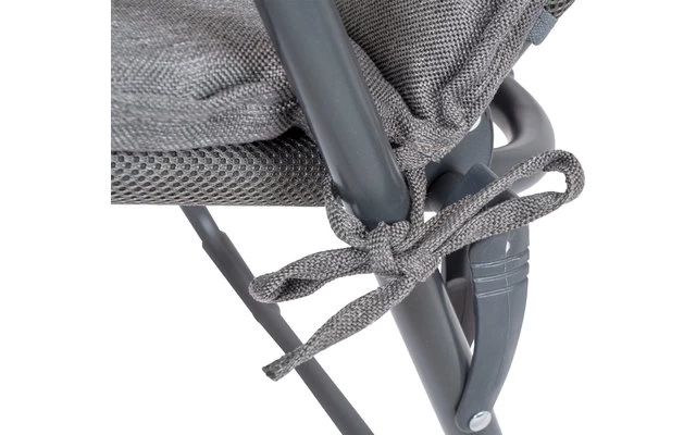 Ein universelles Sitzkissen für (Camping-)Stühle. Das Material des Stuhls ist wasserabweisend und extra resistent gegen Verfärbungen durch das Sonnenlicht. Außerdem ist es sehr pflegeleicht und langlebig. Dieses gepolsterte Sitzkissen sorgt für optimalen Sitzkomfort. Mit Hilfe von Kordeln und Schlaufen kann dieser Bezug an jeden Stuhl angepasst werden.