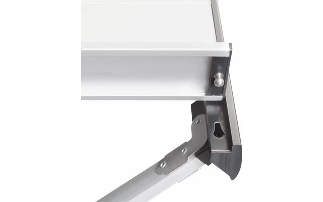 Aluminiumtisch mit Rollplatte und speziellem, einfach zu montierendem Klapprahmen. Rolltischplatte mit silber eloxierten Lamellen (Gapless-System). Sehr stabiler Rahmen aus Aluminium-Vierkantrohren und zentraler Stabilisierungsstange. Mit praktischer Netzablage und Transporttasche (100 % Polyester) mit 2 separaten Fächern.