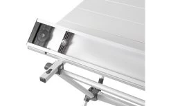 Alu-Falttisch mit rollbarer Tischplatte. Dank integrierter Wasserwaage kann auch auf unebenem Untergrund eine absolut horizontale Positionierung der Tischplatte erreicht werden (Level System). Stabiles Untergestell mit verstellbarem Standbein. Ein Packsack für den komfortablen Transport ist im Lieferumfang enthalten.