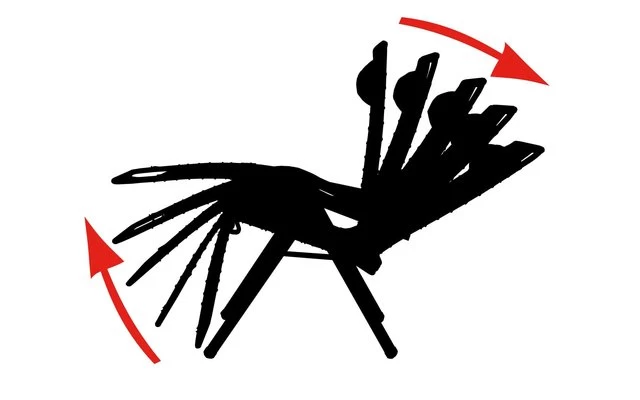 - Verstellbare Relaxliege in unendlich feststellbaren Positionen mit Bremse an der Armlehne