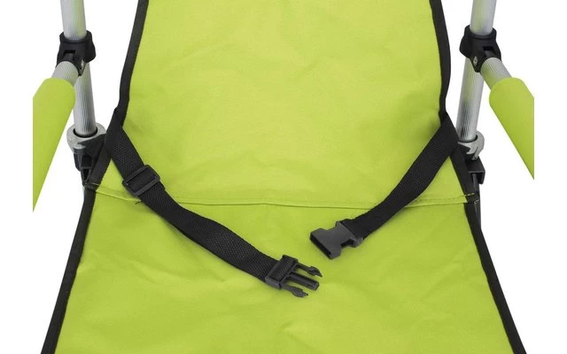 Die Armlehne sind nur 64cm Hoch. Stabiles Alu Faltgestell und eine kleine Packmass.
